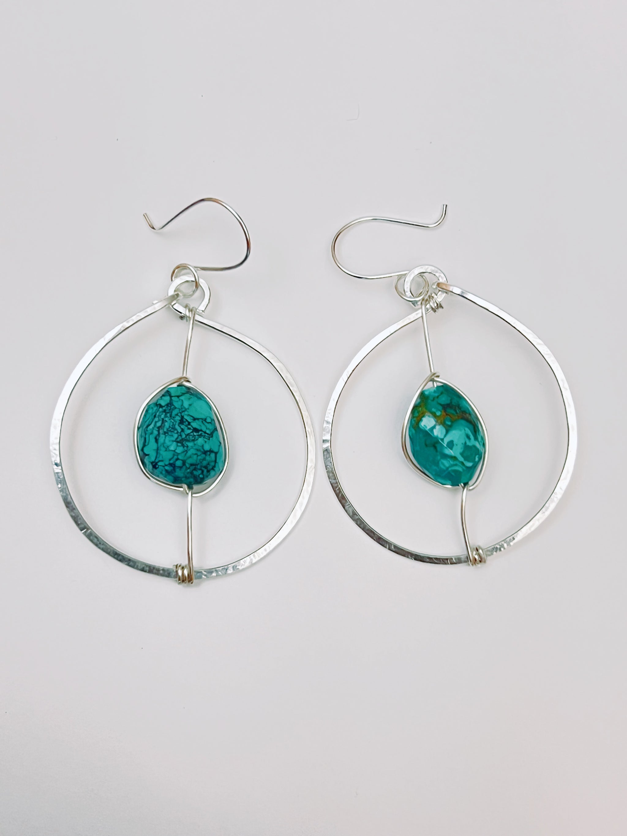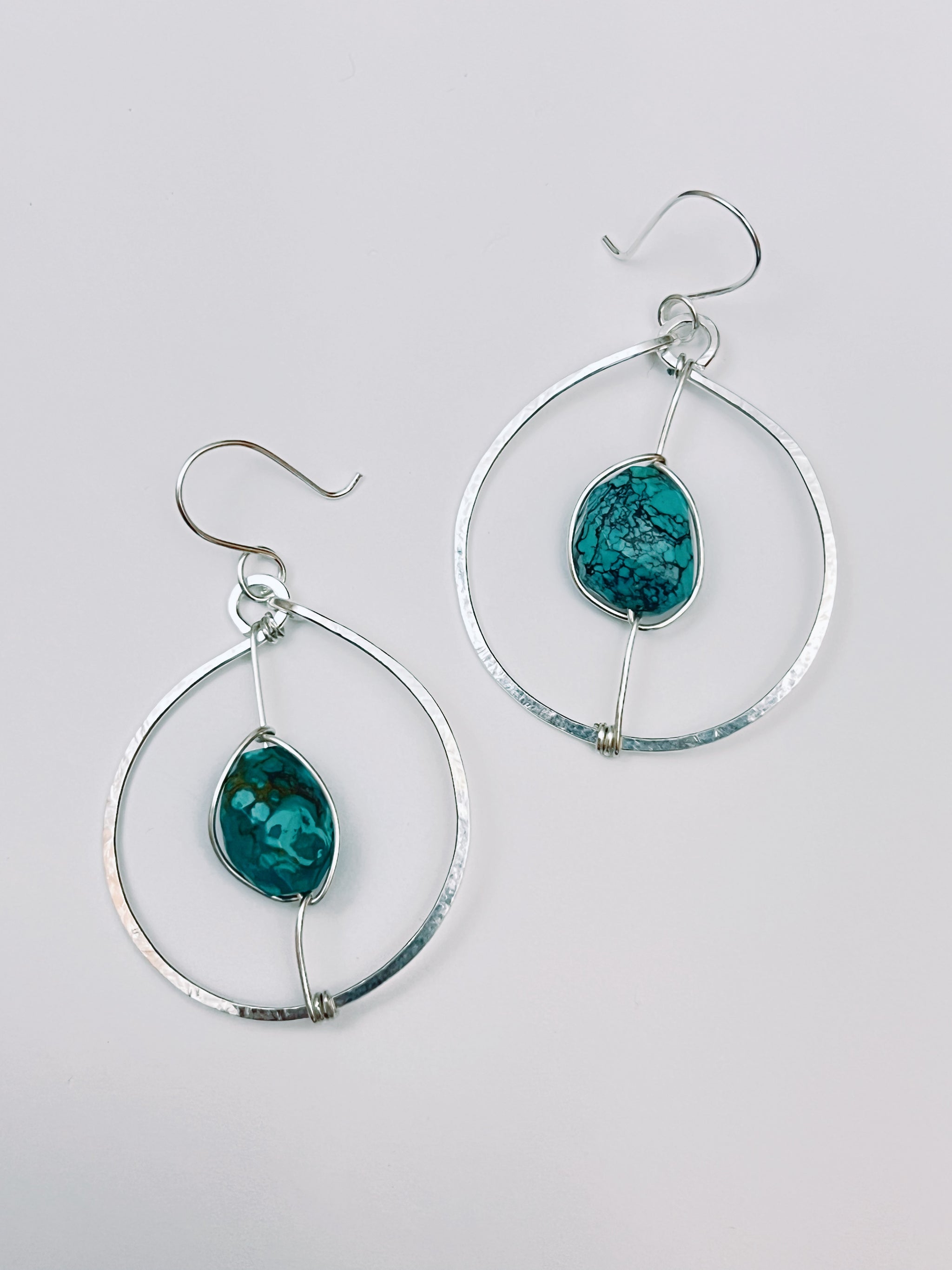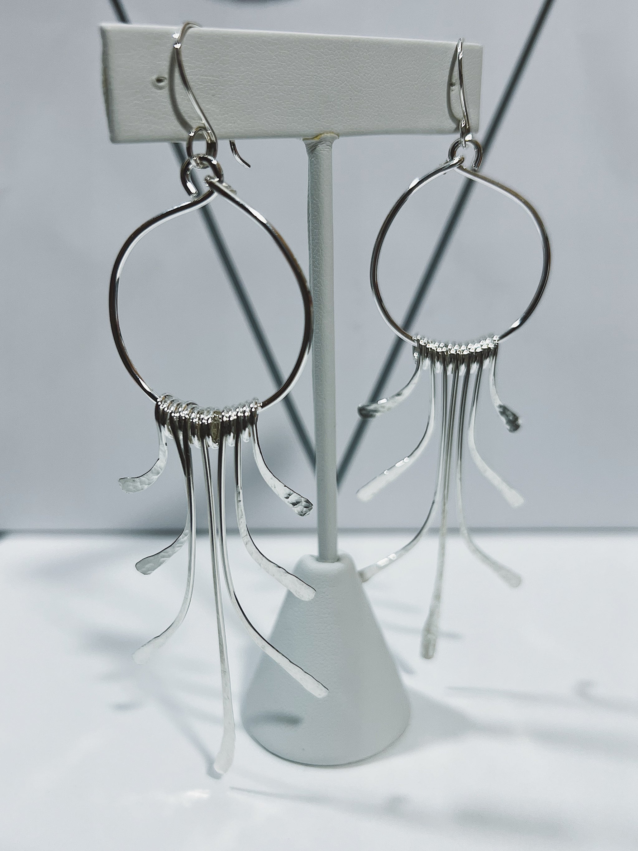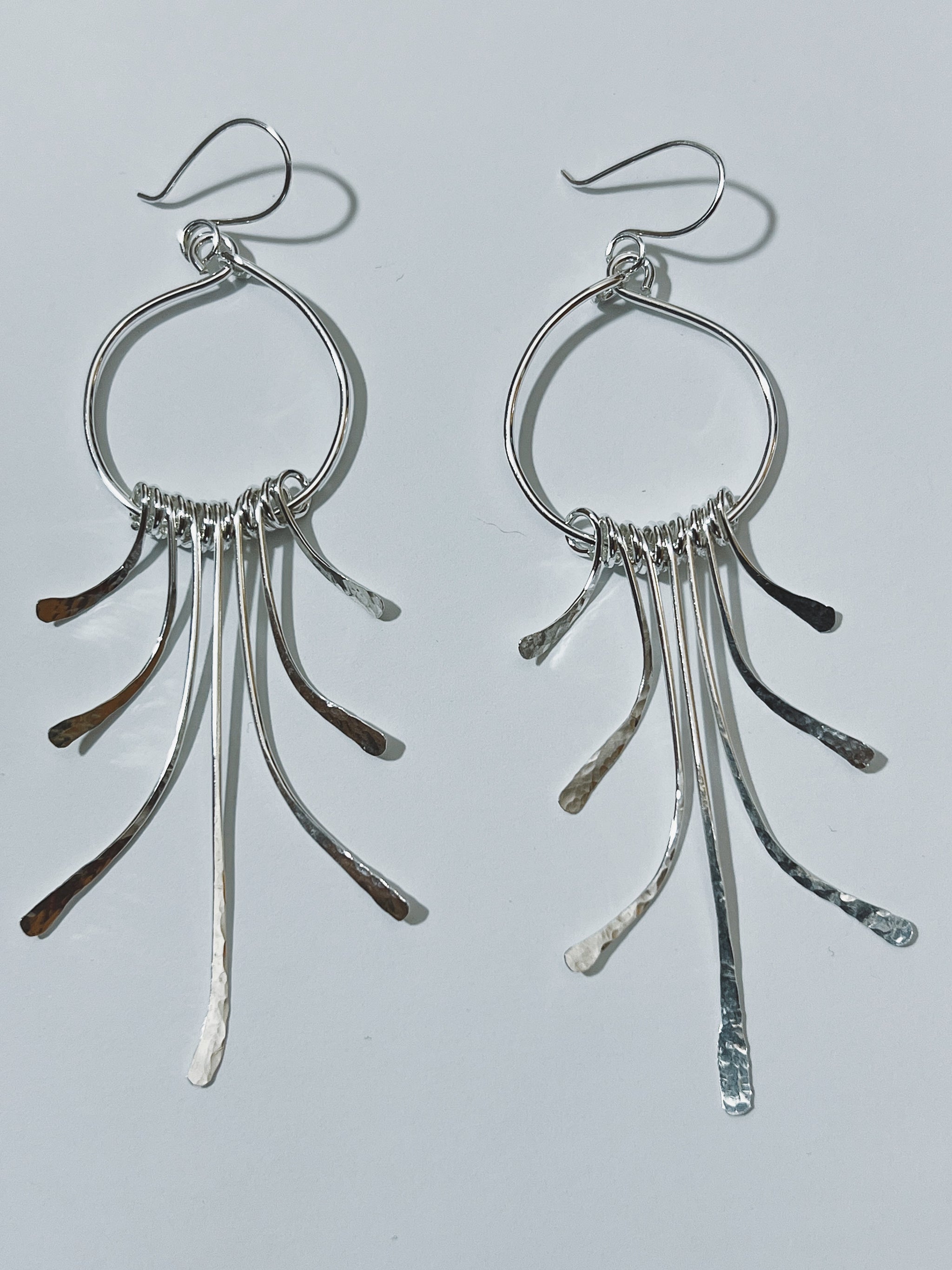 Hammered sterling silver dangles inspired by the quetzal bird. Each earring is handcrafted and varies slightly.
