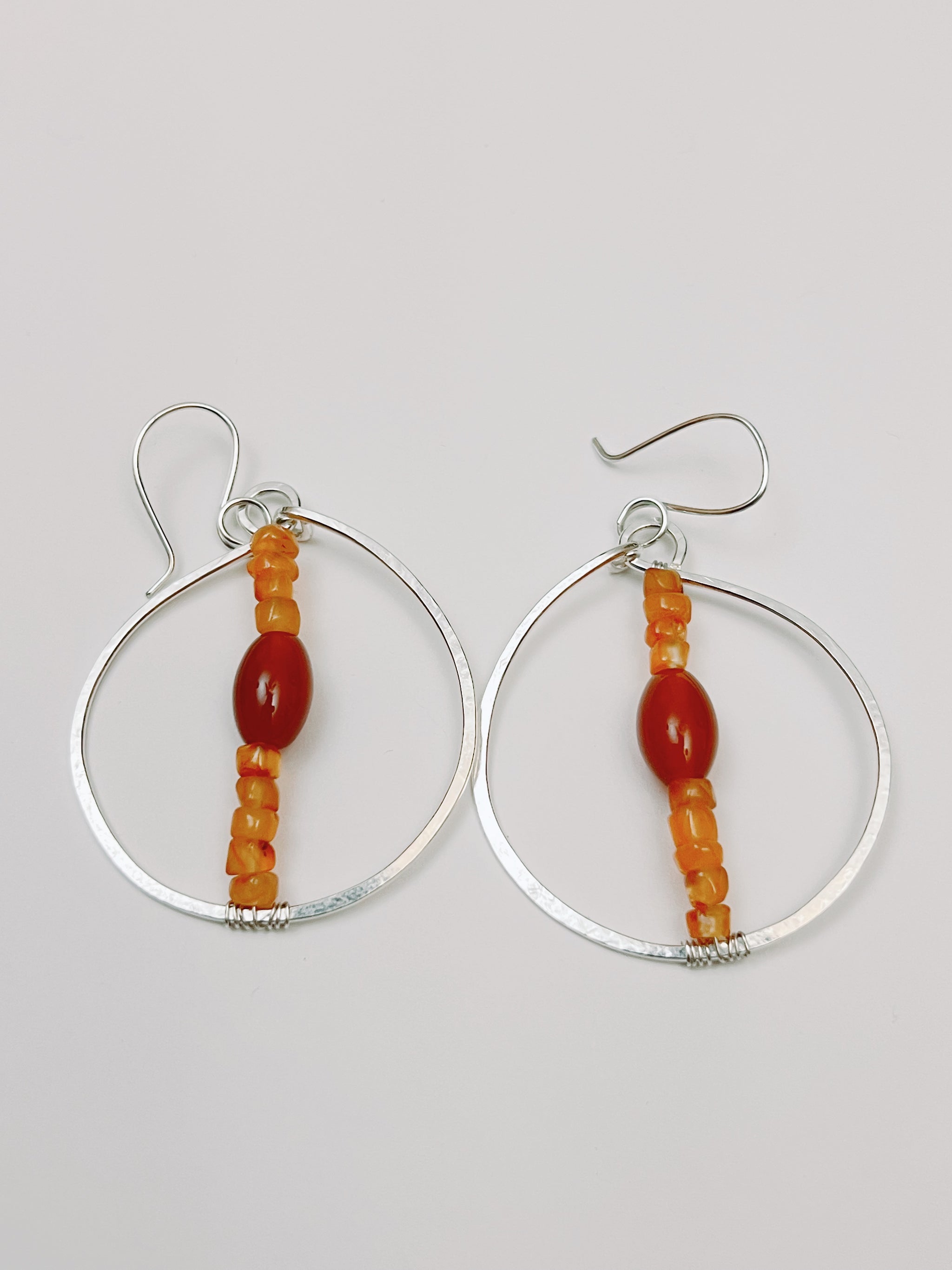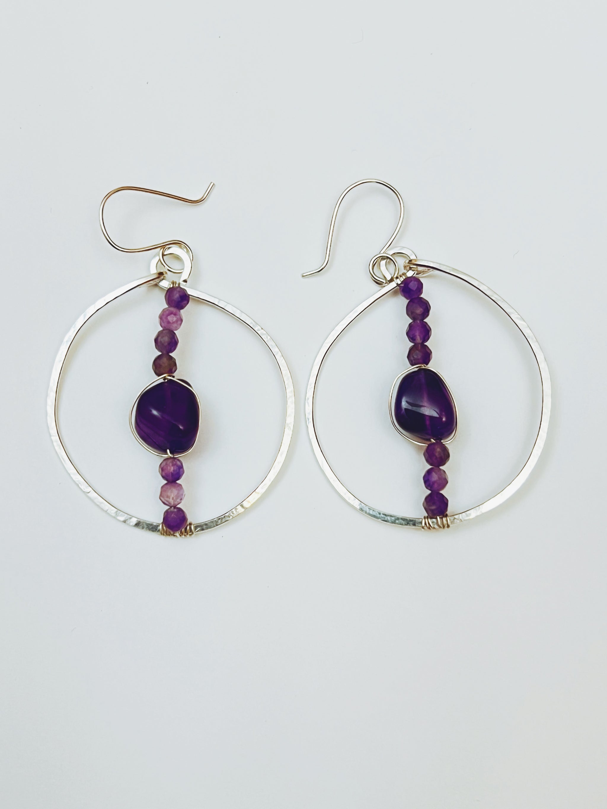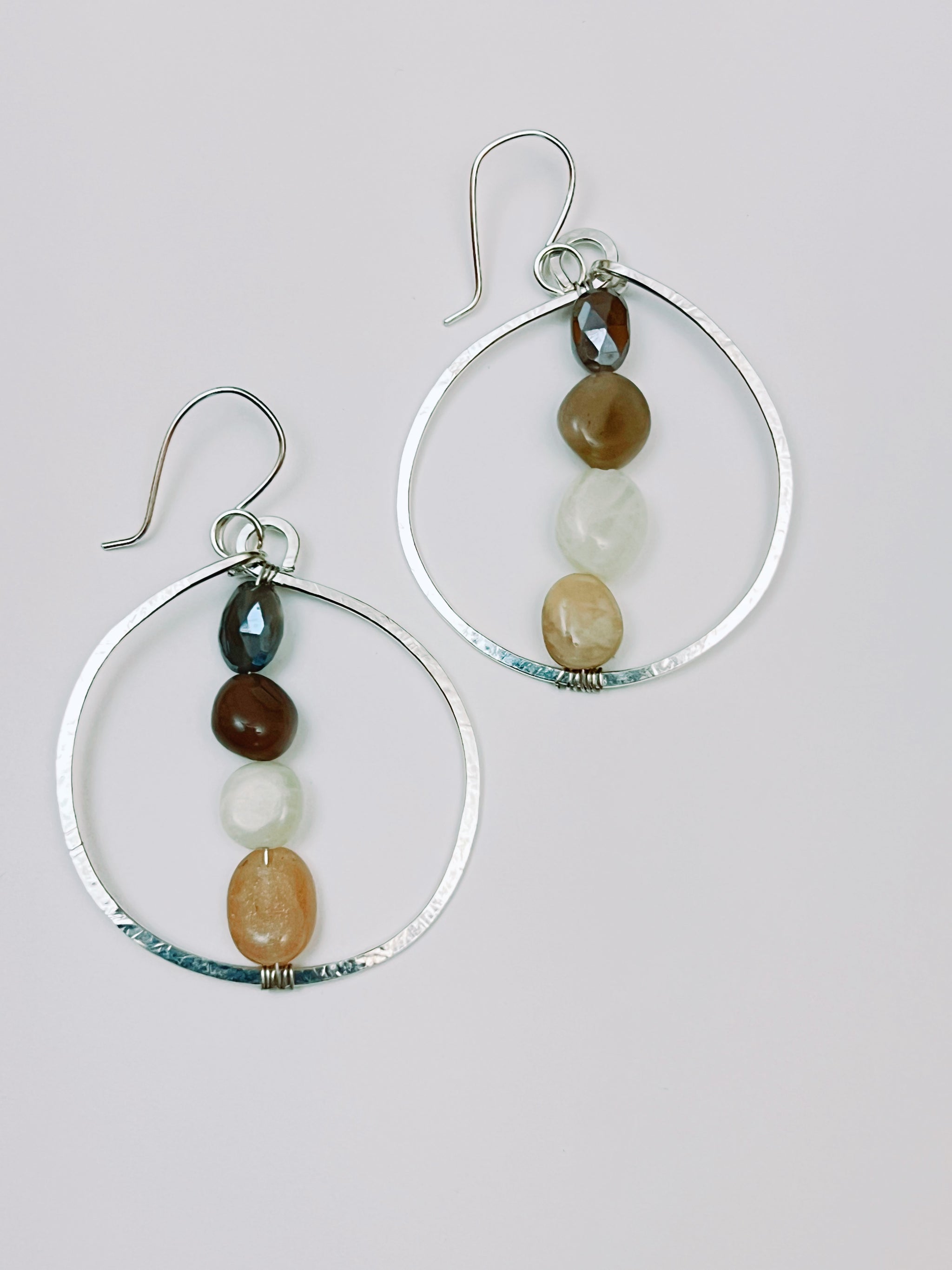 Sterling silver hoops with gold-filled accent wire and clear quartz beads.