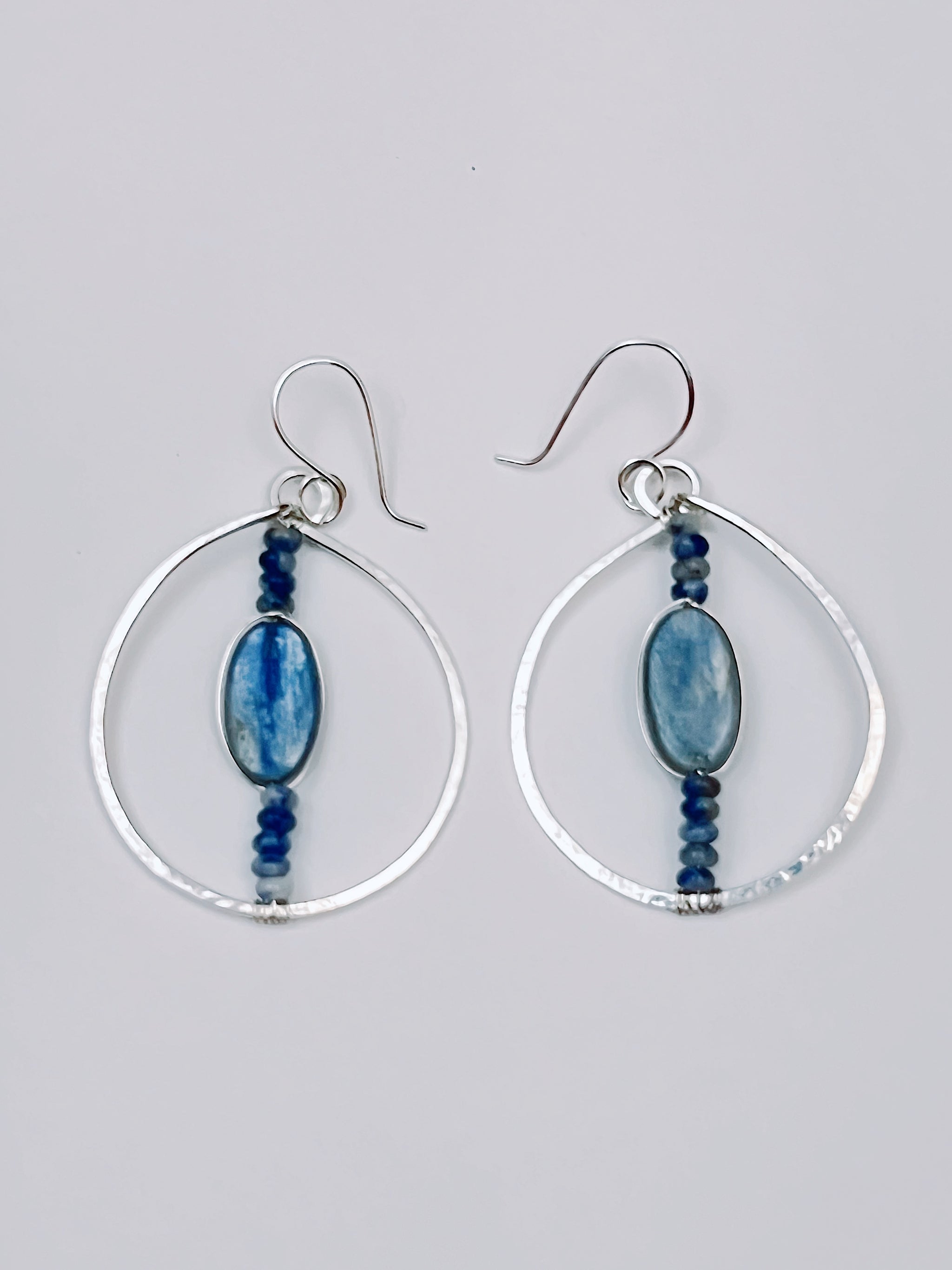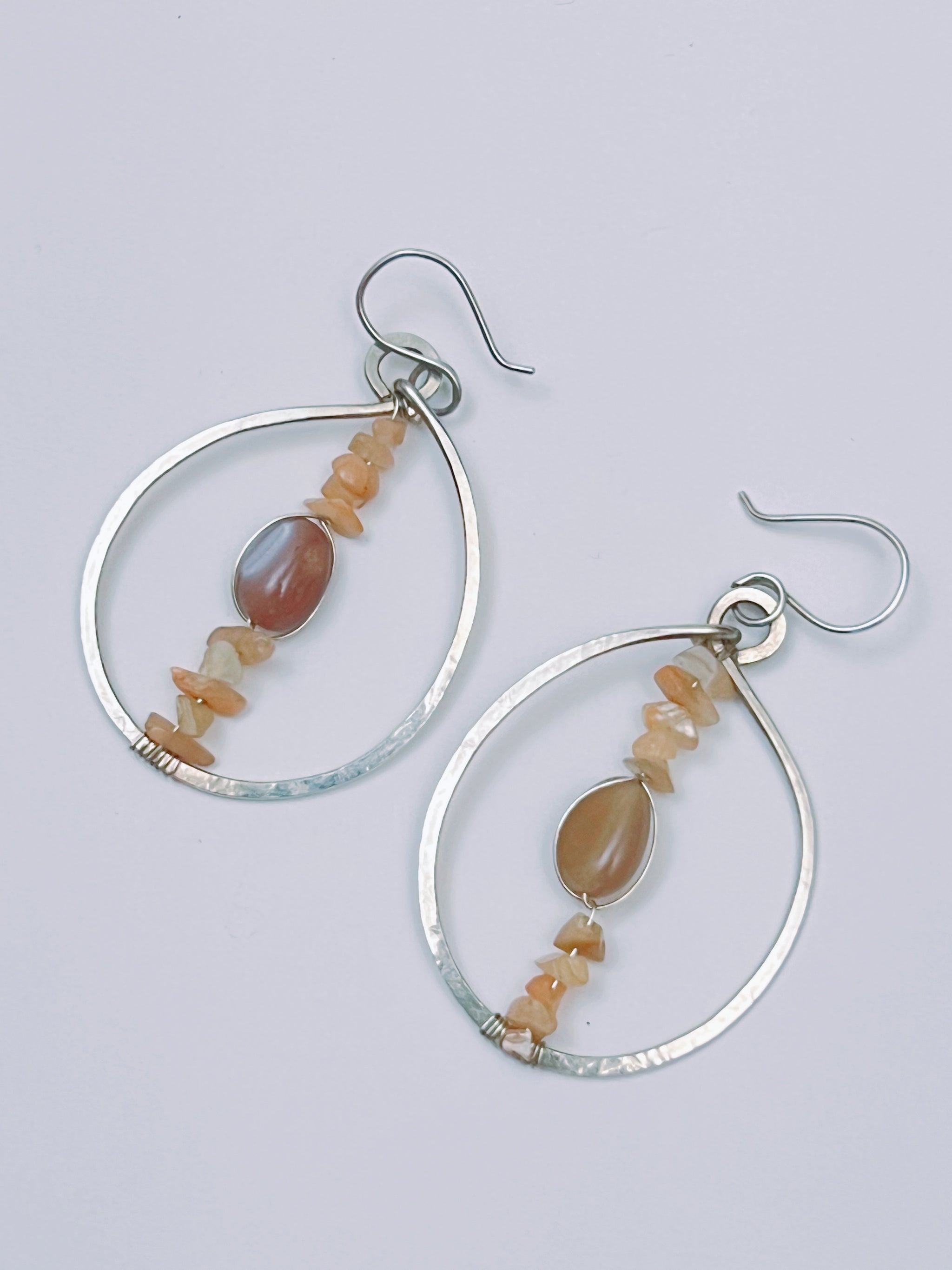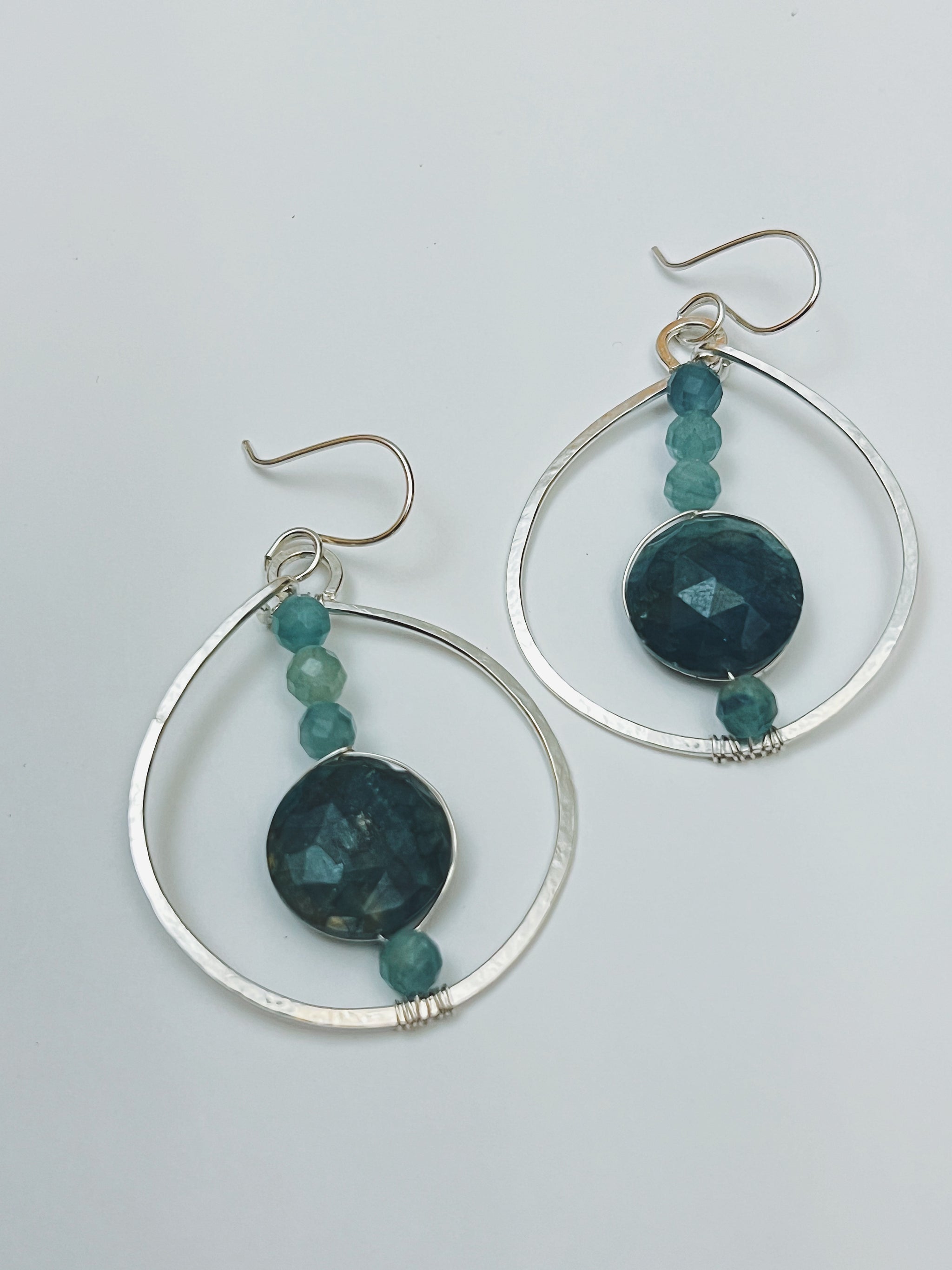 Sterling silver hoops with gold-filled accent wire and clear quartz beads.